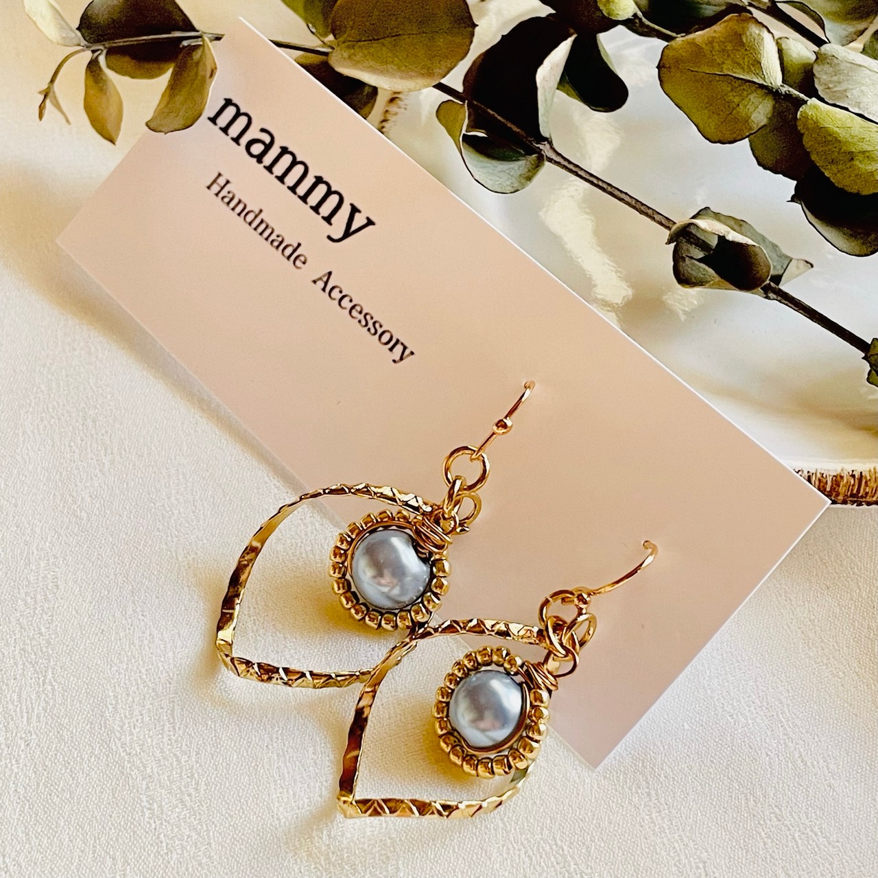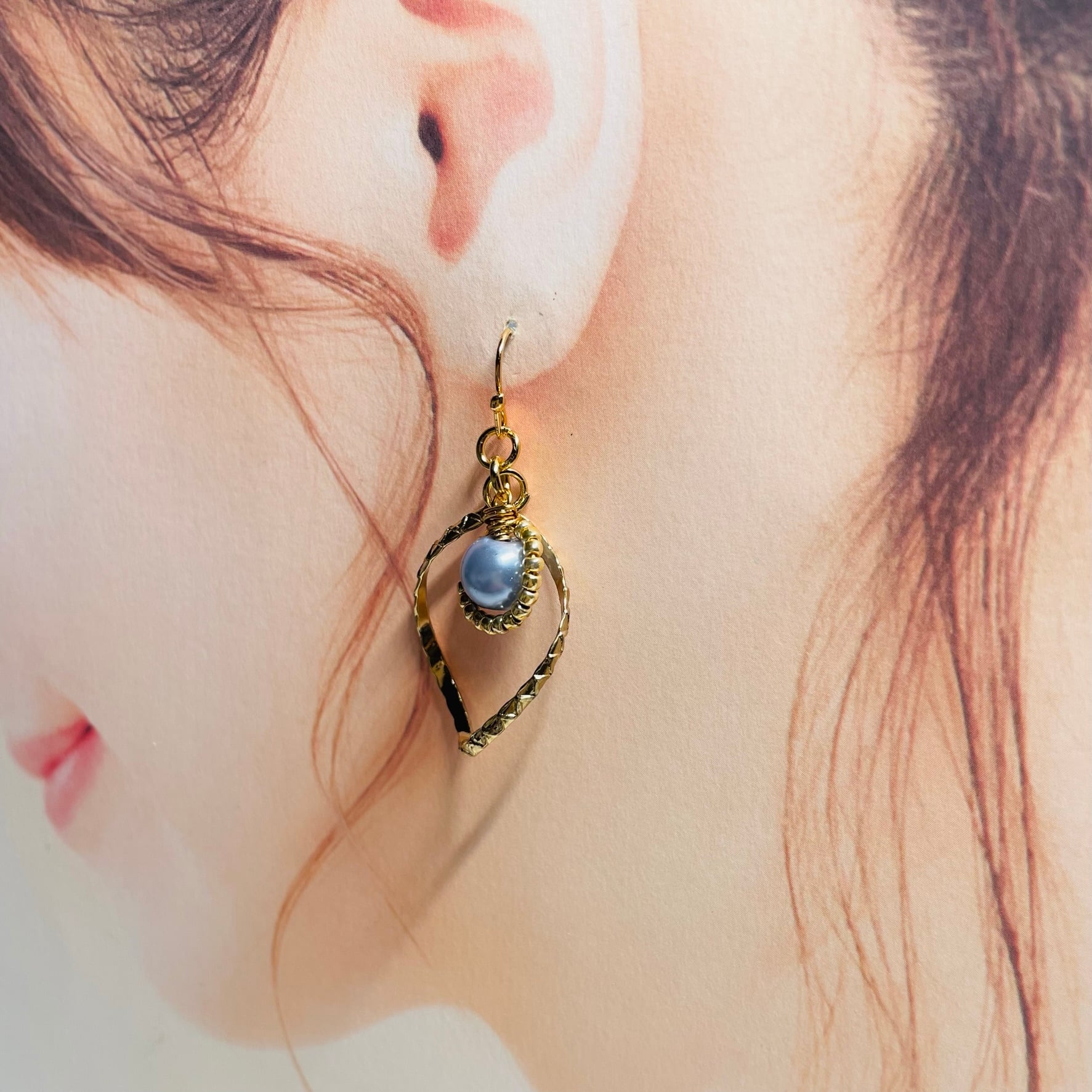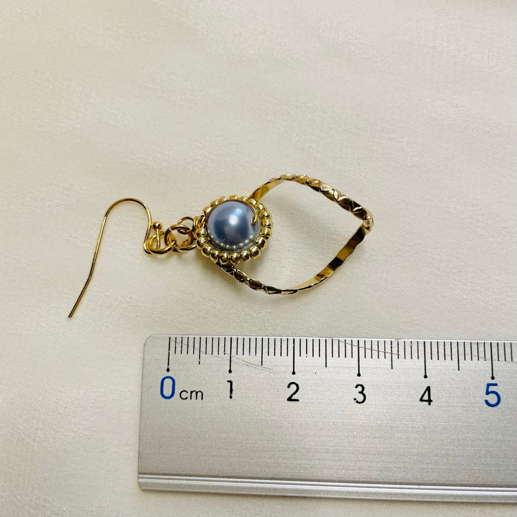 軽やかなブルーのパールと、ひねりチャームがポイントのピアス/イヤリングです。