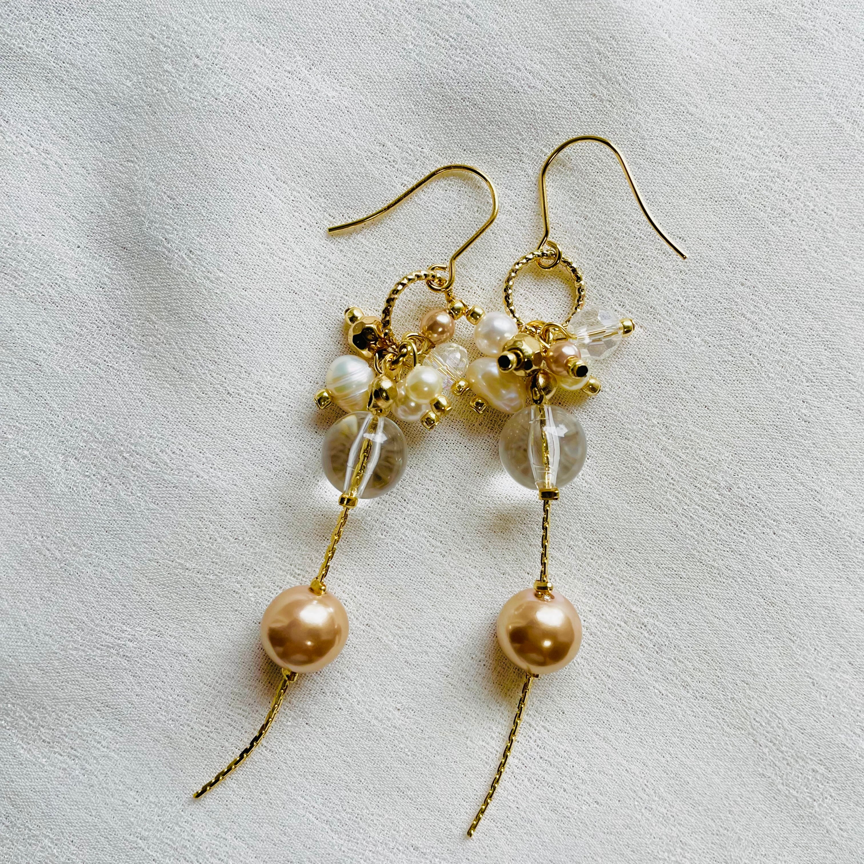華やかさと可憐さを兼ね備えた パール×ロングピアス。