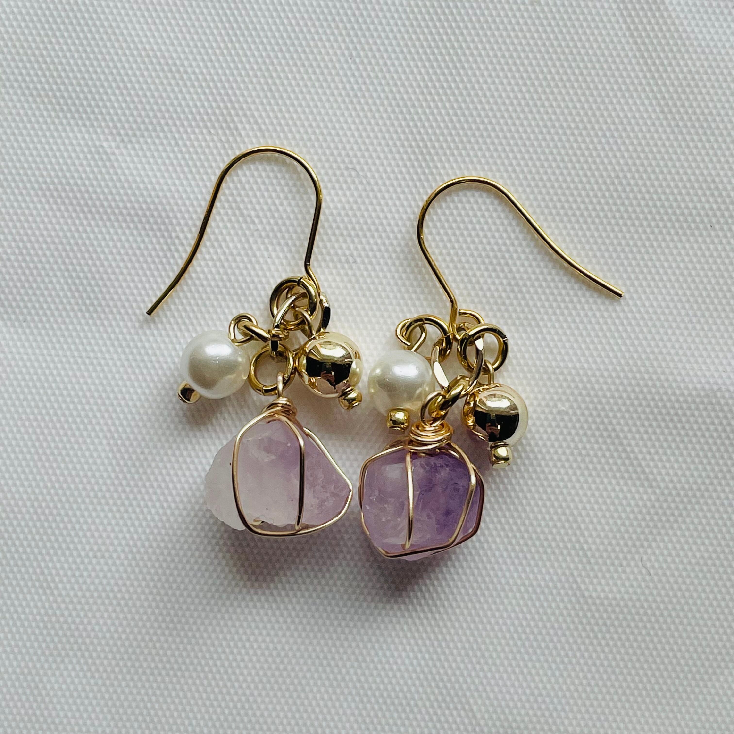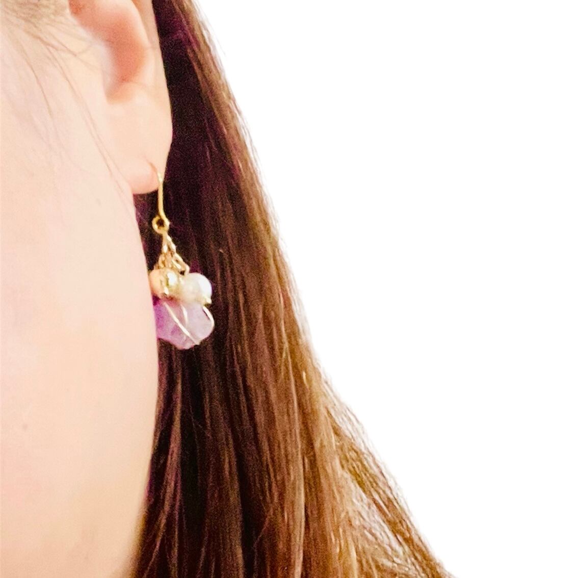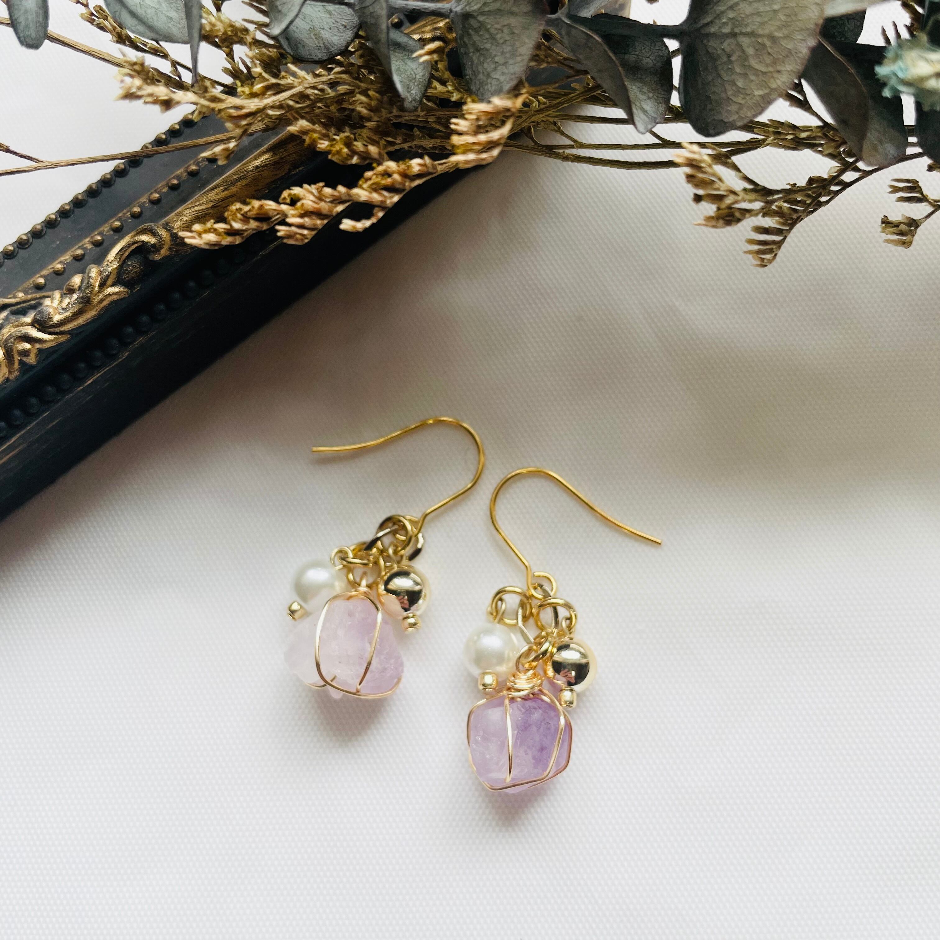 2月の誕生石であるアメジストは、心を癒し、幸福感をもたらすと言われています。また、パールは女性らしさや上品さを引き立てる素材です。このパール×アメジストのショートピアスは、大人の女性にぴったりのアクセサリーです。