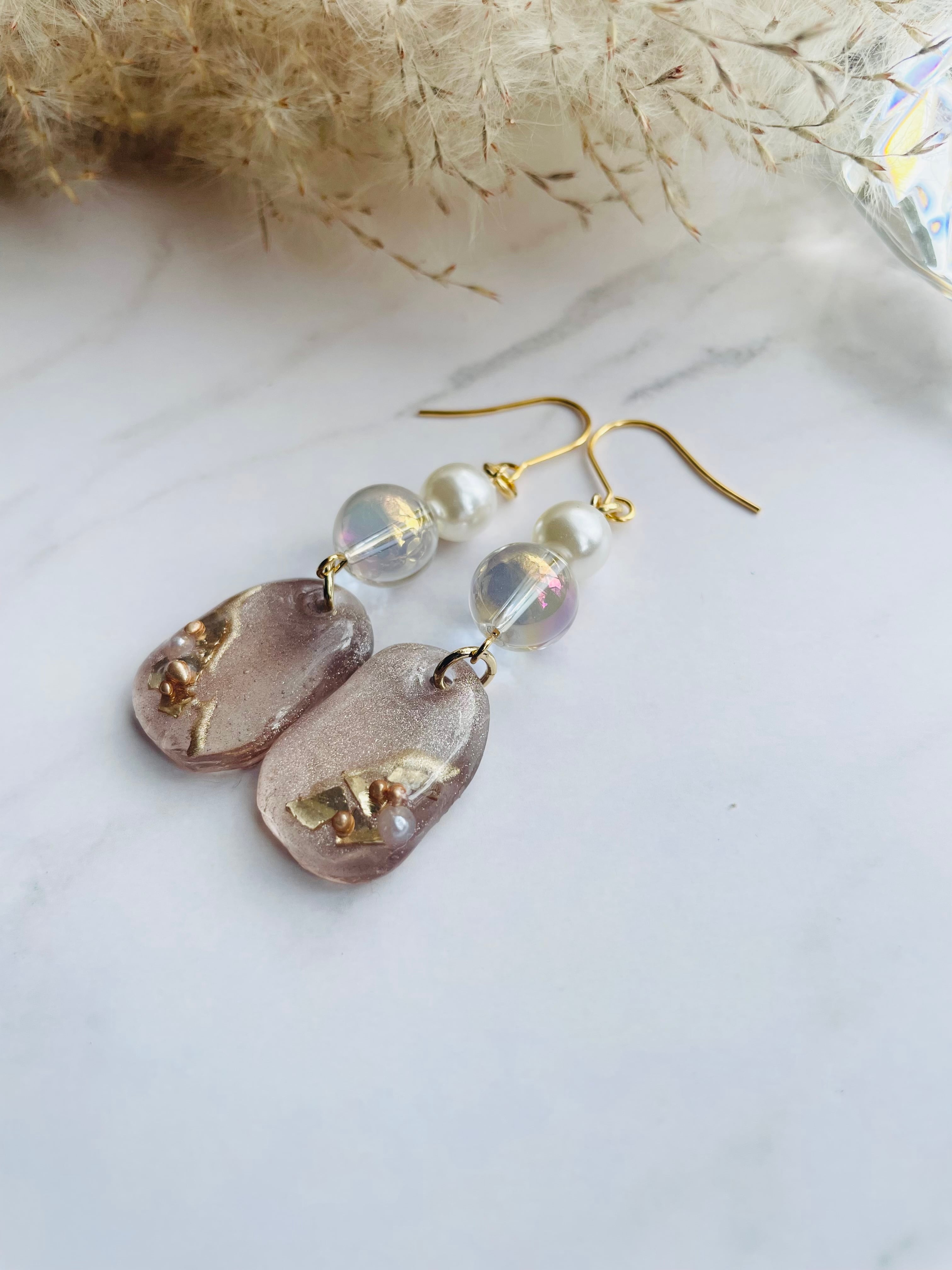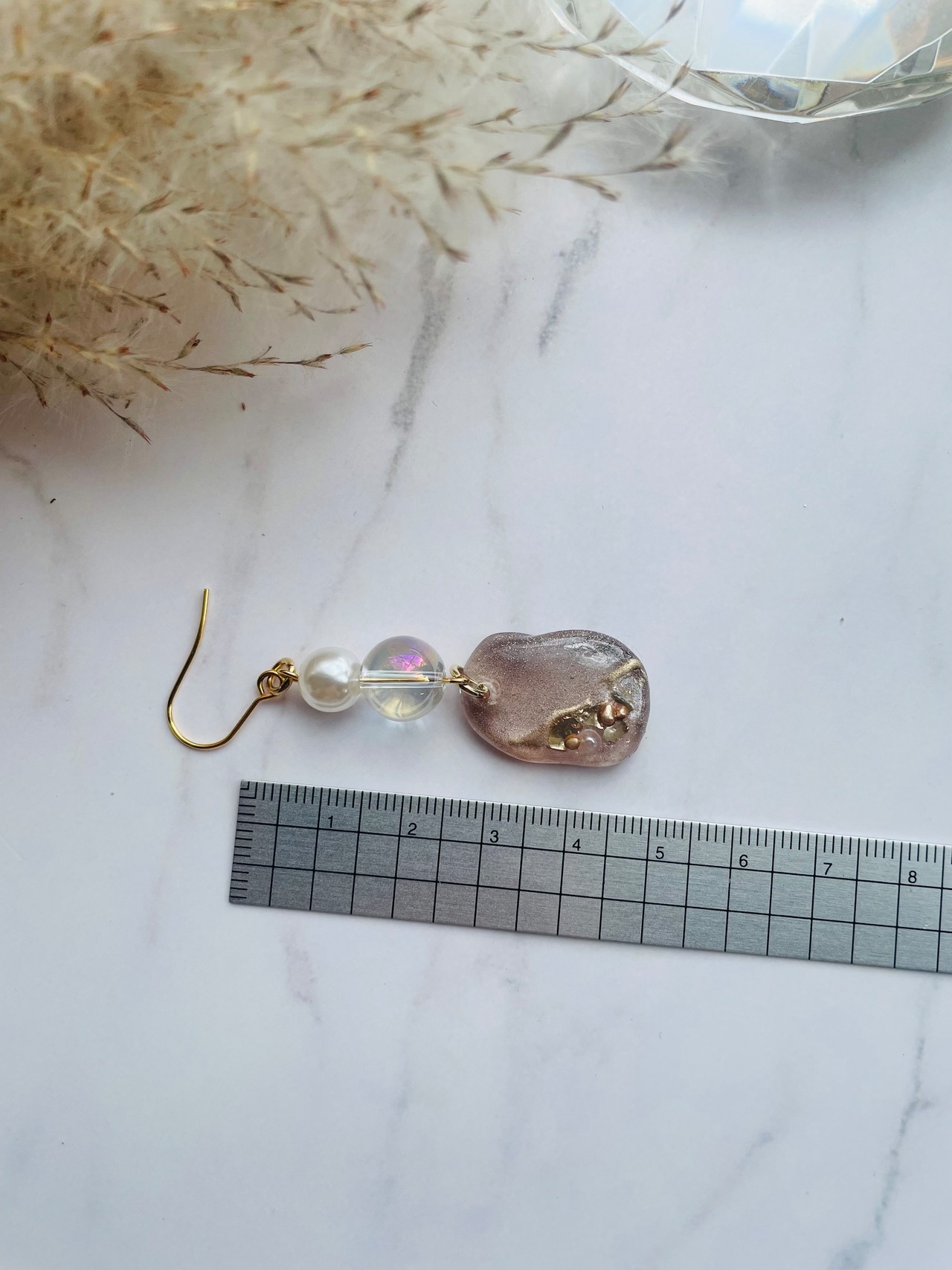 アクアオーロラの煌めきとしゃぼん玉のような輝きが特徴で、どんなシーンでも幅広くお楽しみいただけます。 レジンで覆われたデザインは上品な雰囲気を出し、さりげないパールのアクセントが大人の女性にぴったりです。