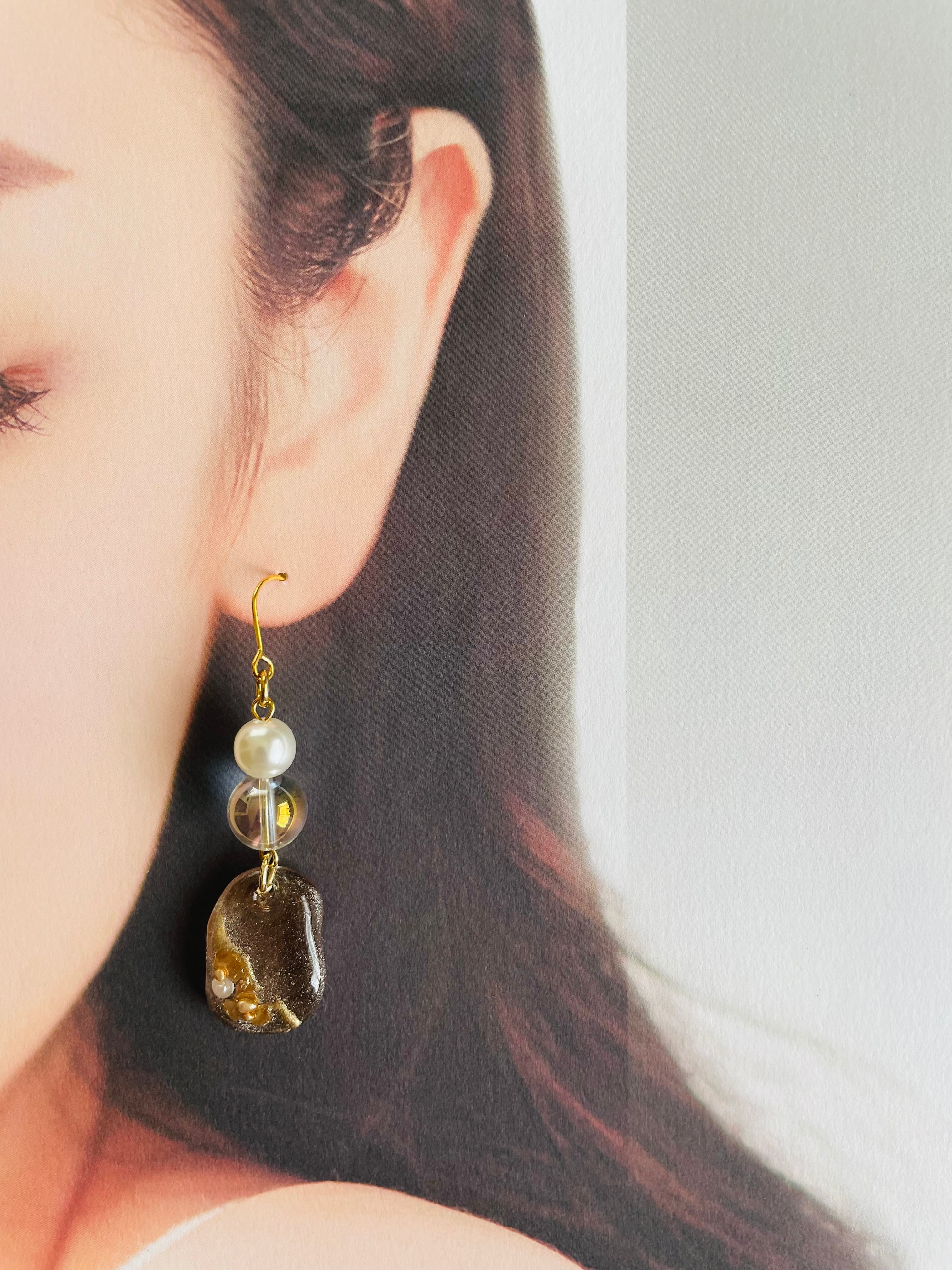 P-120 (8月新作)天然石アクアオーロラ×レジン×パール×ピアス×イヤリング×チョコブラウン